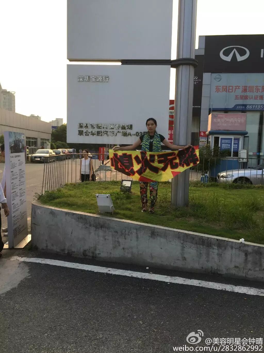 最后经销商无法满足车主的要求,车主便采取拉横幅影响商家正常营业的方式“维权”。