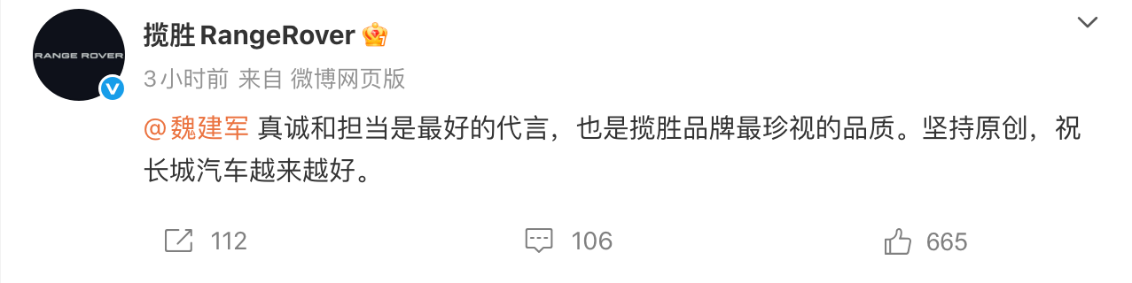 路虎揽胜回应魏牌V9X抄袭事件