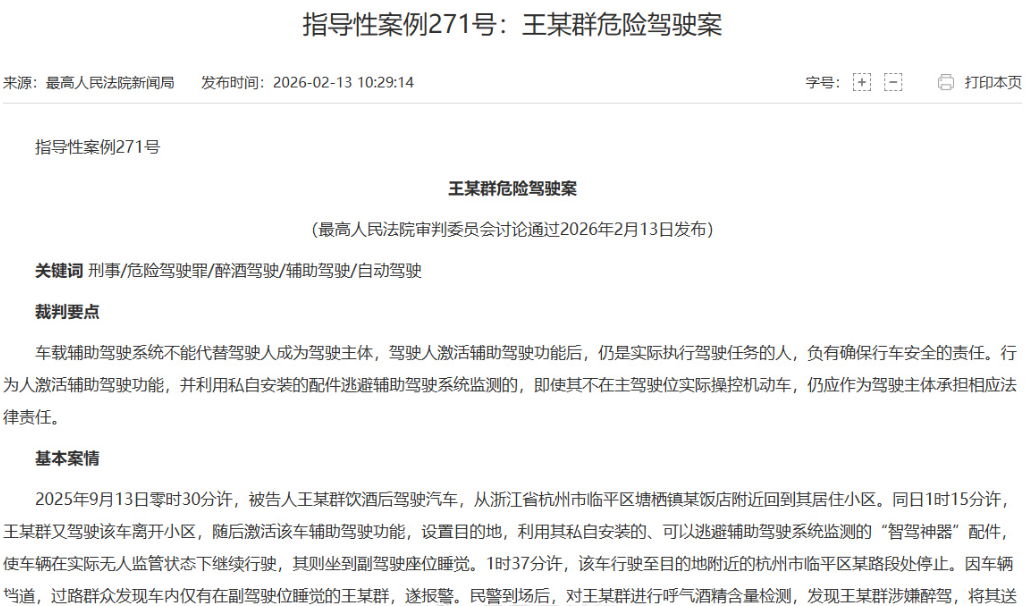 最高法明确:辅助驾驶不能替代人,脱手驾驶仍担刑责