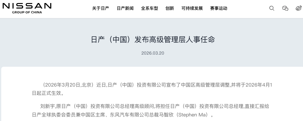 首位中国籍总经理!日产在华人事变动