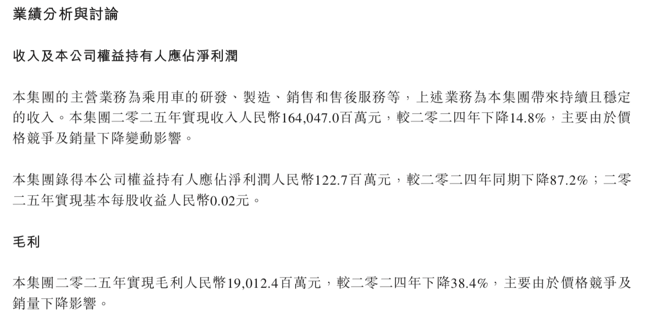 北京汽车2025年财报发布!