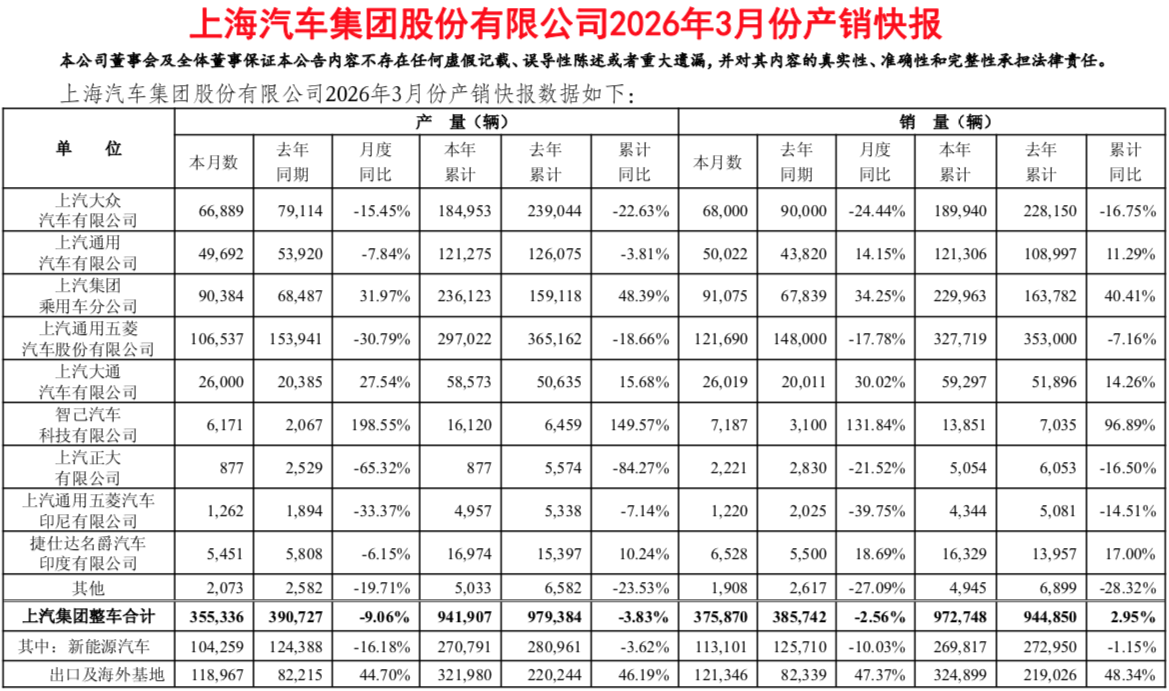 97万辆!上汽集团一季度销量出炉