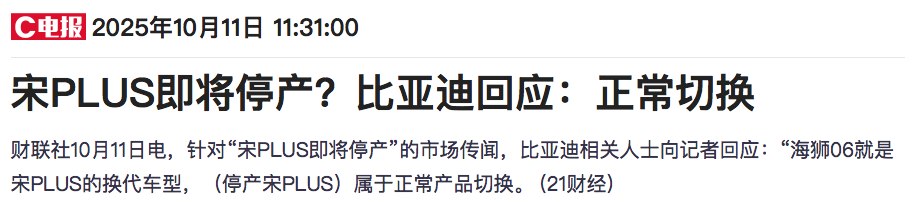 宋PLUS被曝将停产!比亚迪回应:正常切换