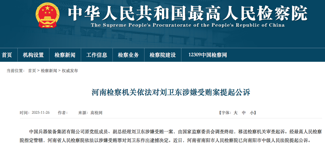 兵器装备集团原党组成员、副总经理被提起公诉!
