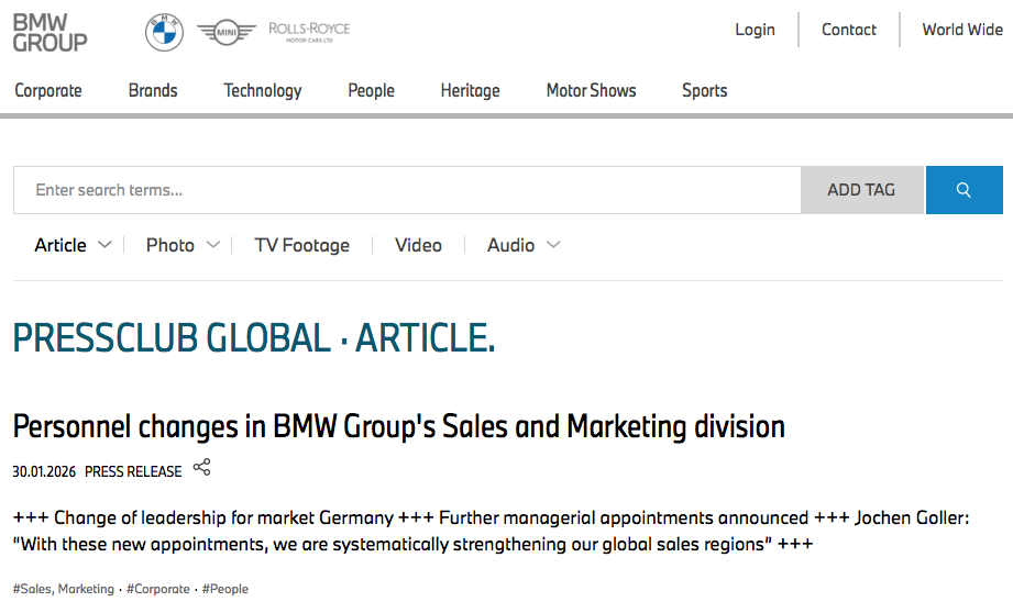 人事变动!宝马集团官宣