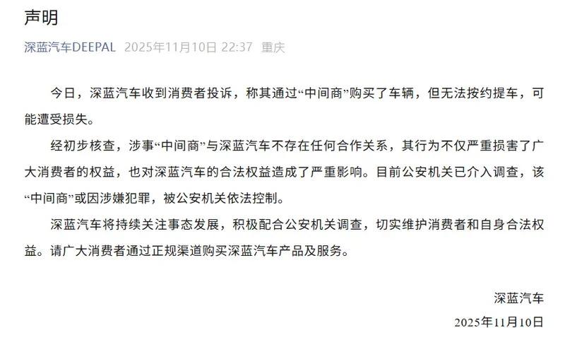 通过“中间商”购买无法按约提车!长安汽车发声明