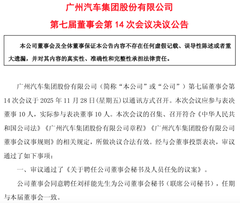 人事变动!广汽集团公告