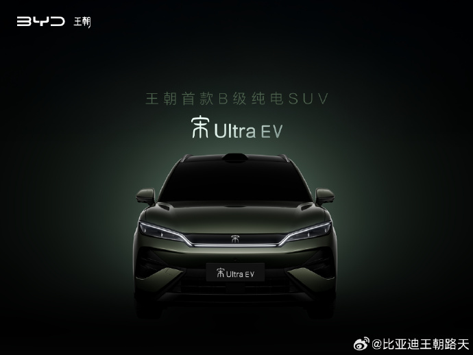 王朝首款B级纯电SUV!比亚迪宋Ultra EV预告图发布!