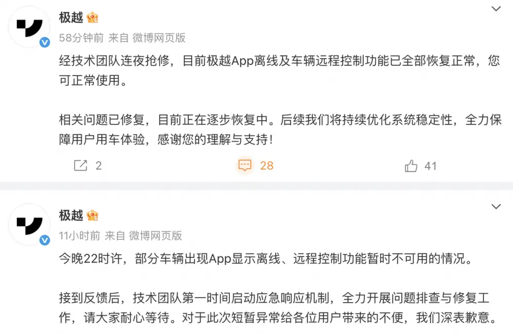 极越汽车突发App离线、远程控制功能异常 官方回应