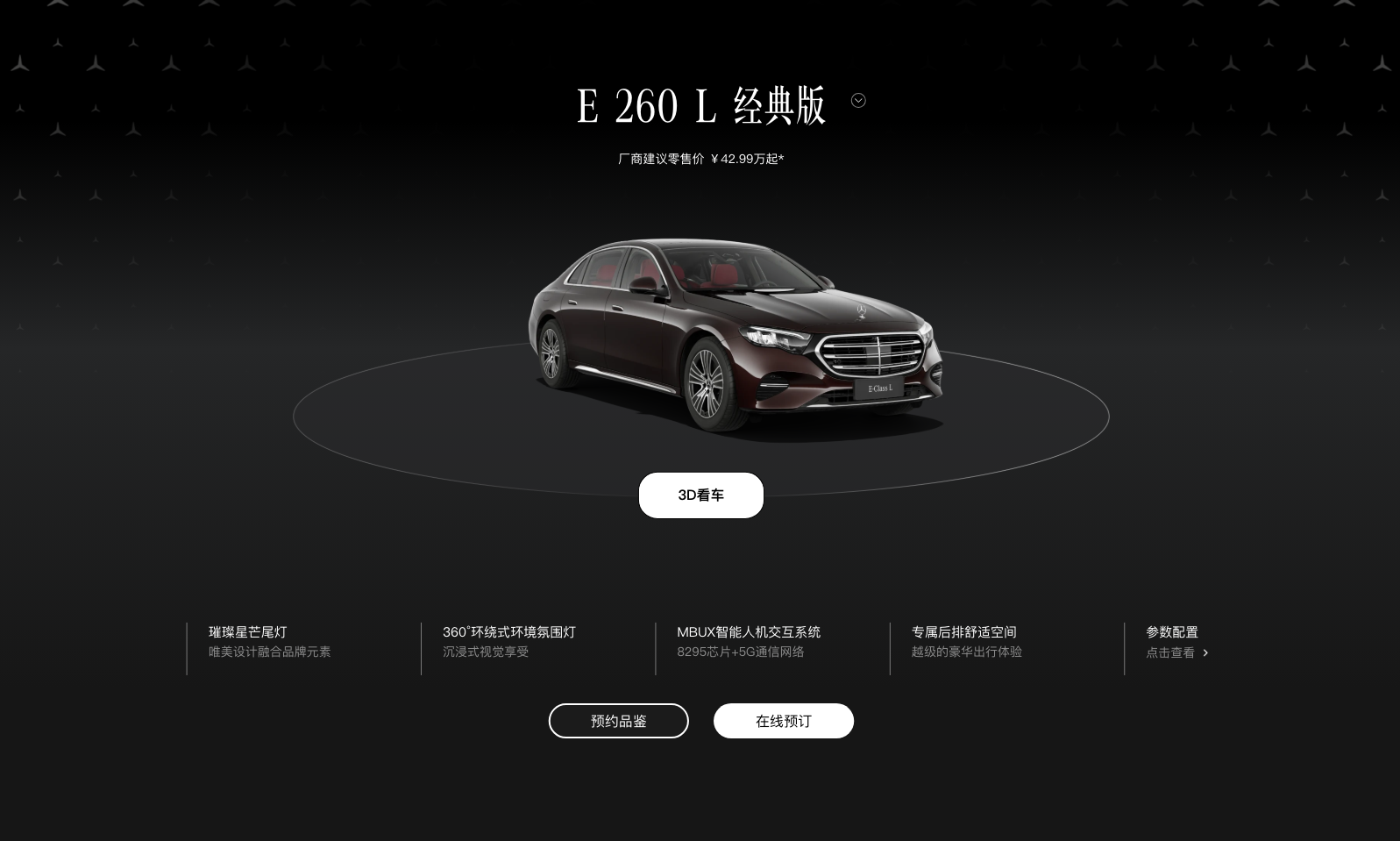 在2023广州车展上,全新一代奔驰E级长轴距版车型(V214)亮相并开启预售,预售价区间为45.00-54.00万元,其中,E 260 L轿车、E 260 L运动轿车预售价为45万元起,E 300 L