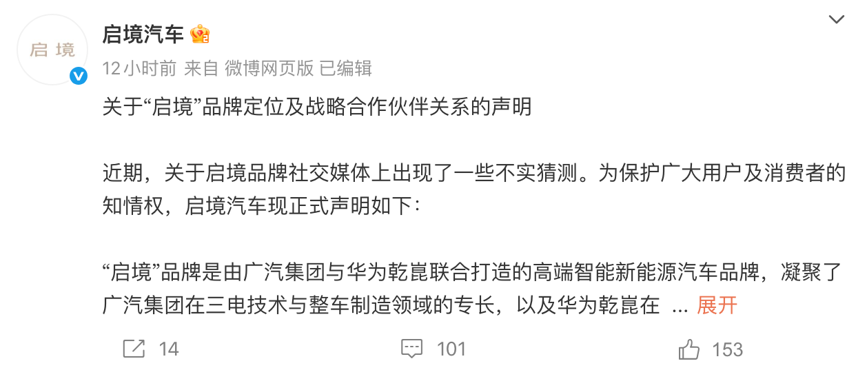启境汽车:严禁将“华为”与“启境”进行捆绑命名