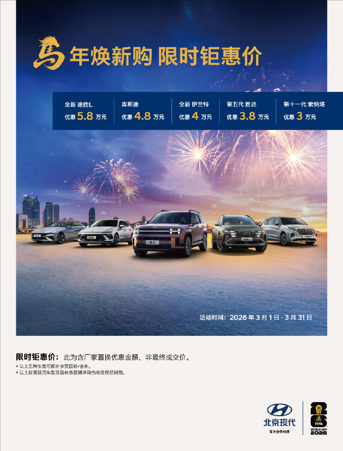 最高立省5.8万元!北京现代推出限时钜惠价