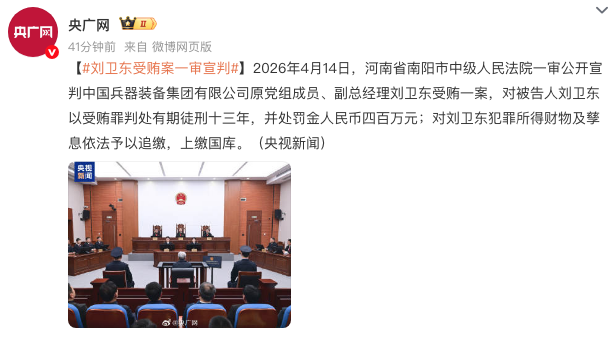 被判13年!中国兵器装备集团有限公司原副总经理受贿案一审宣判