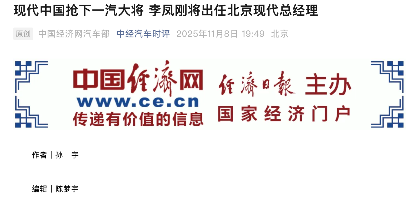 20年来首次!李凤刚出任北京现代总经理