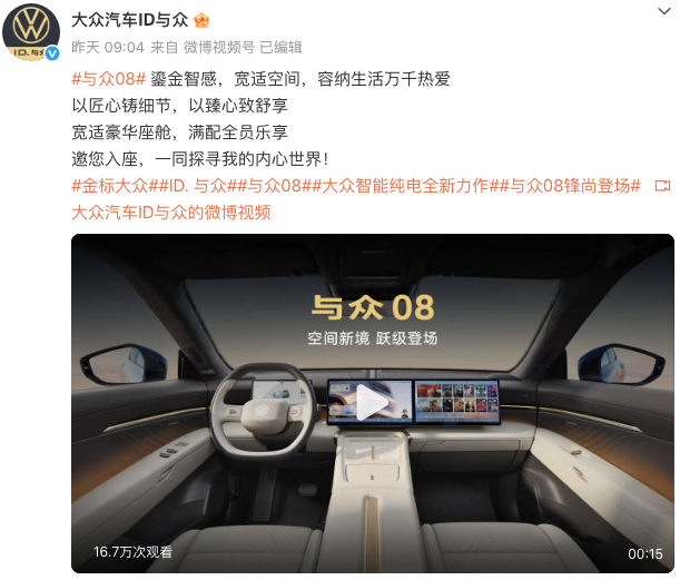双联屏!与众08内饰官图发布