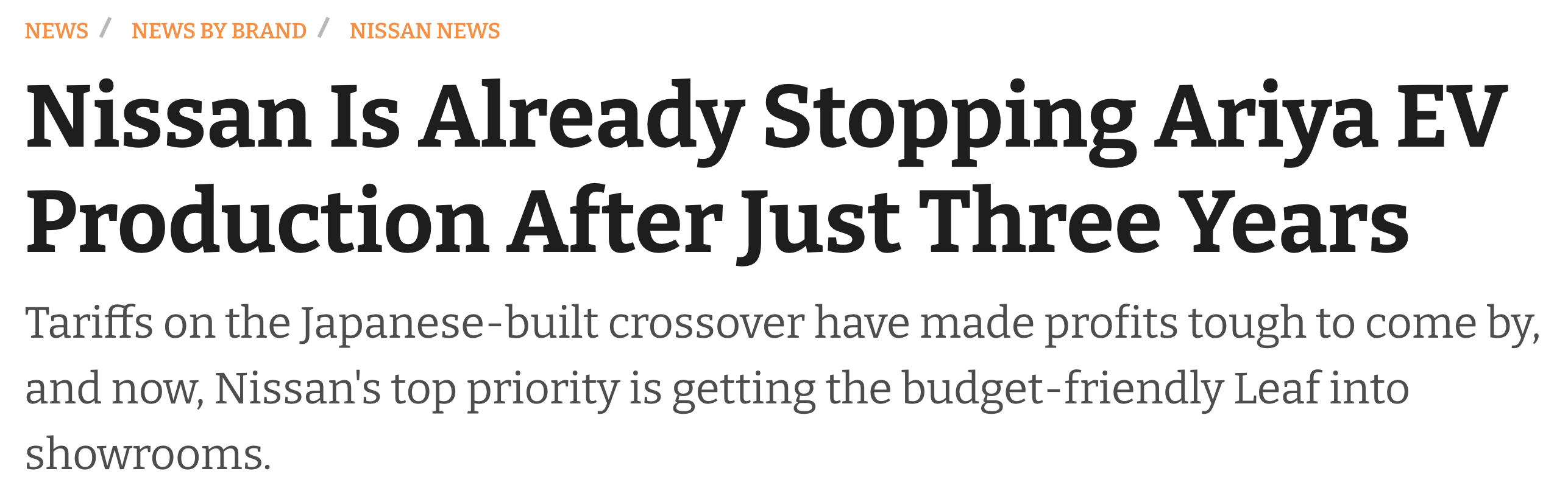 仅推出三年!日产Ariya美国停产
