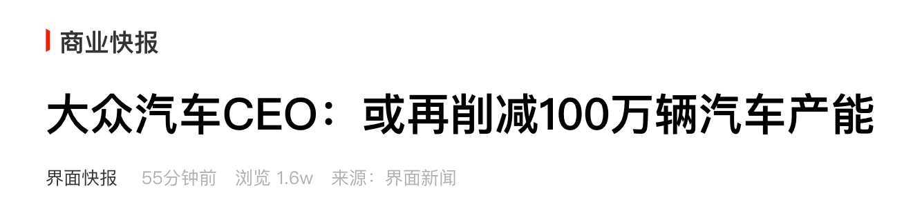 大众CEO:拟削减百万产能