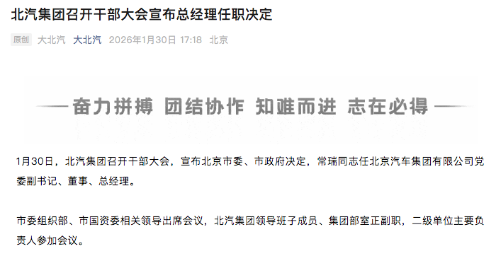 空缺21个月!北汽集团总经理确定了