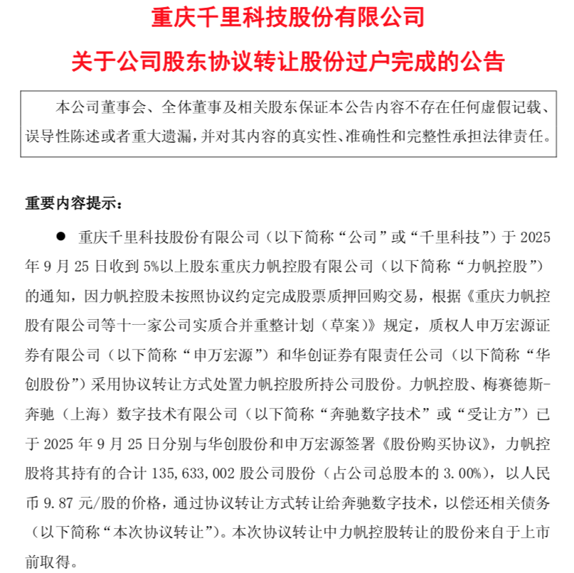 成第五大股东!奔驰完成入股千里科技