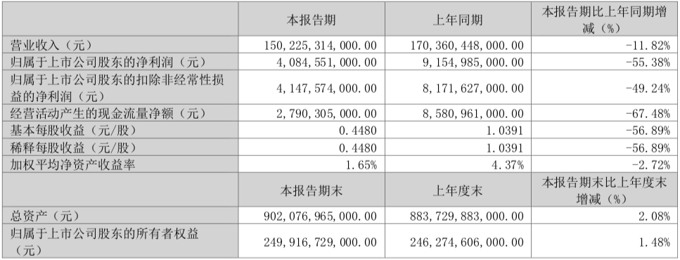 4月28日,比亚迪发布2026年第一季度业绩报告。报告显示,今年一季度比亚迪营业收入为1502.25亿元,同比下滑11.82%;归属于上市公司股东的净利润为40.85亿元,同比下滑55.38%;归属于