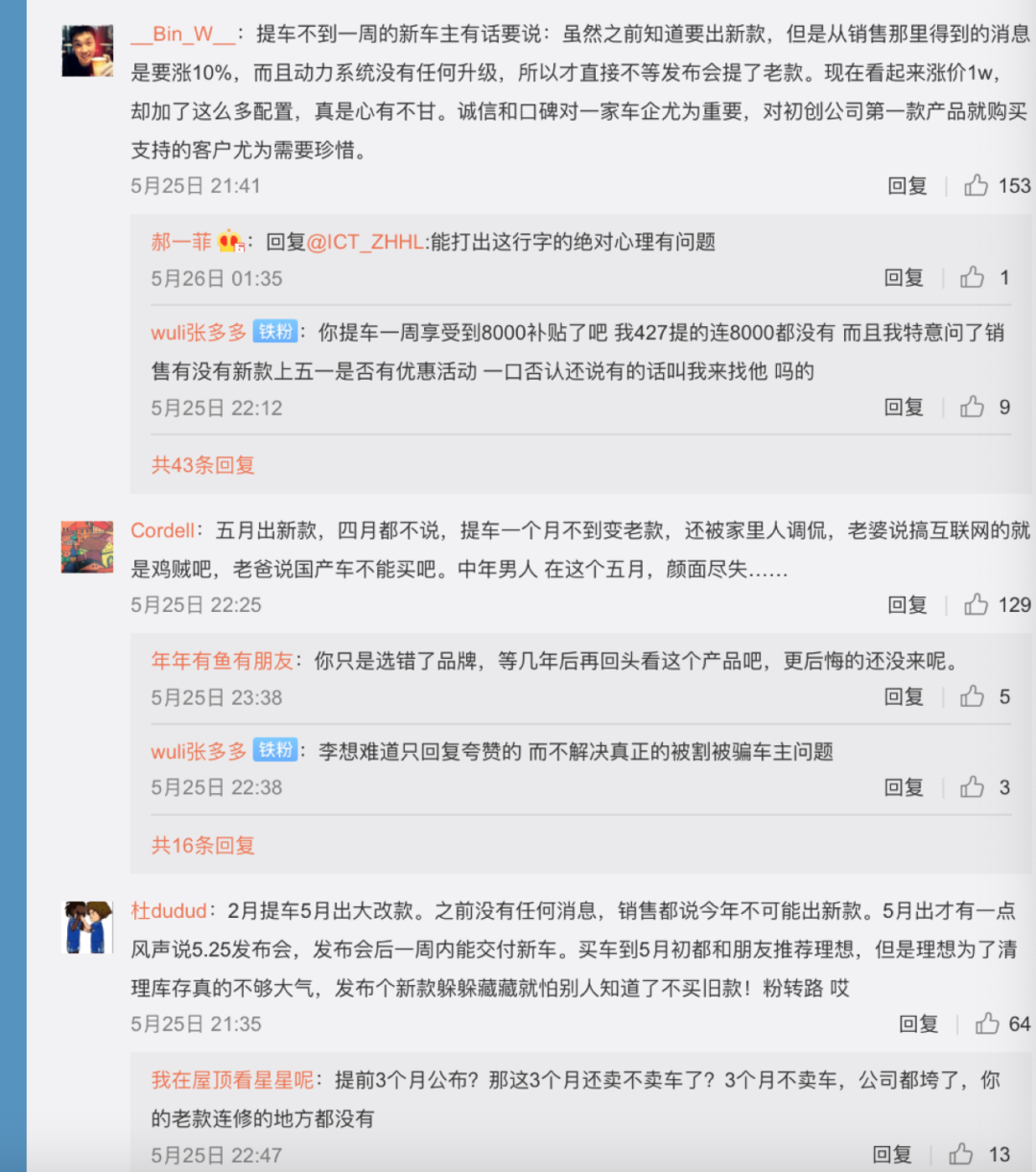 理想汽车联合创始人、总裁沈亚楠在新款上市后也谈及这一问题:“行业本身在加速发展,理想汽车不能停止产品的演进。对用户而言,理想汽车还是更多从后续用车、售后服务上提升用户满意度,通过不断的提升服务让用户满意。”而这两天在李想微博下的车主反弹,或是他没有预料到的结果。而显然,车主维权也并不是一件容易的事情。从另一个角度来说,理想汽车如何对待这些车主,将影响着理想汽车这一新生品牌的口碑。