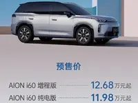 11月3日,埃安AION i60正式开启预售,新车提供两种动力可选,其中增程版12.68万起,纯电版11.98万起。据了解,埃安AION i60定位五座紧凑型SUV,提供增程和纯电两种动力,增程版CL