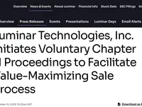 12月15日,美国自动驾驶汽车激光雷达传感器制造商Luminar Technologies宣布,已向美国得克萨斯州南区破产法院主动申请启动第11章破产程序,并计划在破产程序中出售其激光雷达业务,且已达