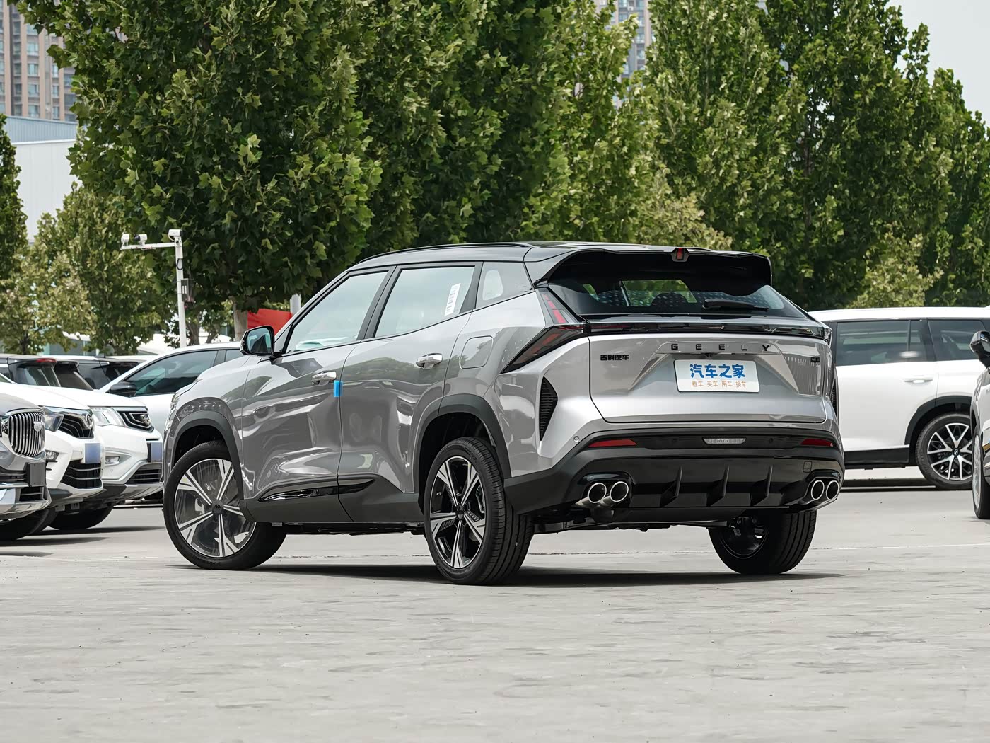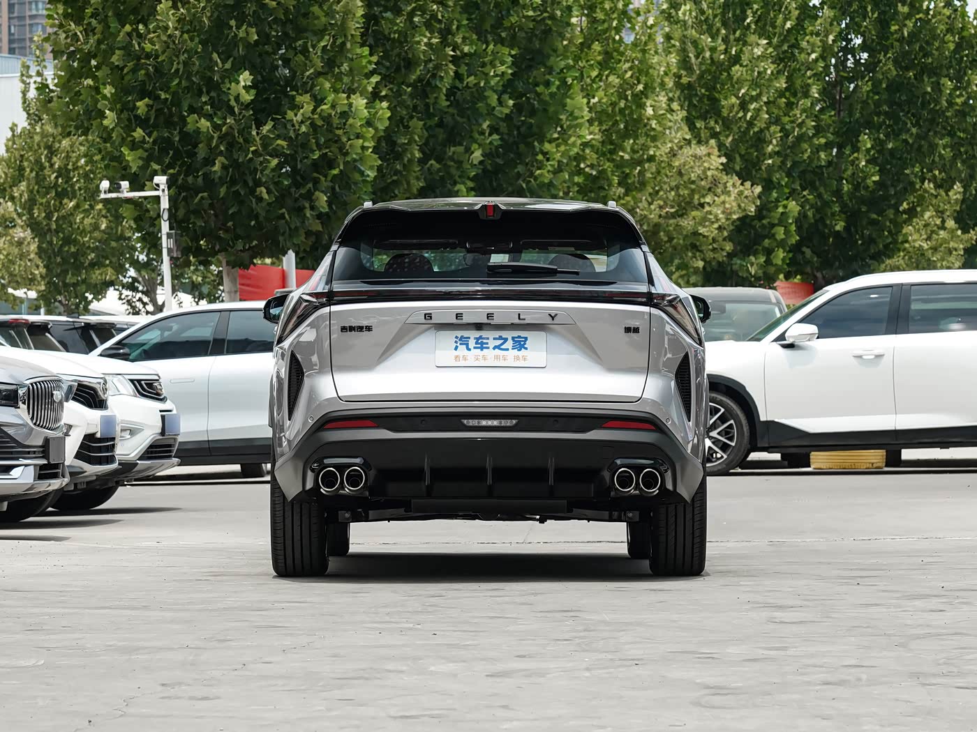 车尾部分,新车依然呈现机甲风视觉风格,采用贯穿式尾灯组设计,配备车顶扰流板以及带有扩散器造型的后包围布局,整体运动气息浓郁。排气方面,新车采用双边共四出的排气筒,营造出较强的视觉力量感。尺寸方面,新车长宽高分别为4549/1865/1650mm,轴距为2707mm。作为对比,目前在售的博越长宽高分别为4510/1865/1650mm,轴距为2701mm,定位紧凑型SUV。