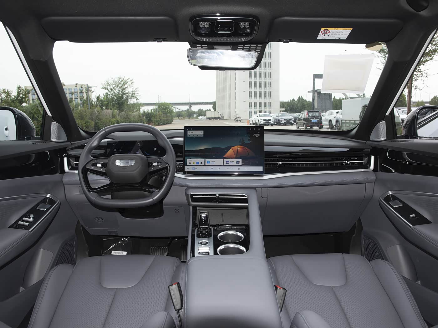 内饰部分,新车变化明显,车内采用环抱式座舱布局,提供如意橙和福禄灰两种内饰配色选择,看起来非常时尚精致。配置方面,新车由现款14.6英寸纵向布局的中控屏改为横向布局,空调出风口也进行了简化,兼顾操作便捷性和设计美感。中控台区域两个杯架改为独立式布局,并增加50W手机无线充电面板,换装了3D镭雕水晶换挡杆,以此提升质感。智能座舱方面,新车全系博越全系标配Flyme Auto车机系统,内置最新版定制高德地图,全系标配手机APP远程控制,整体科技感十足。