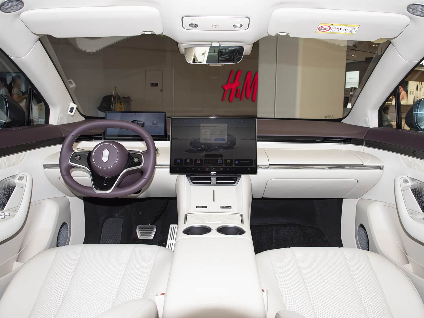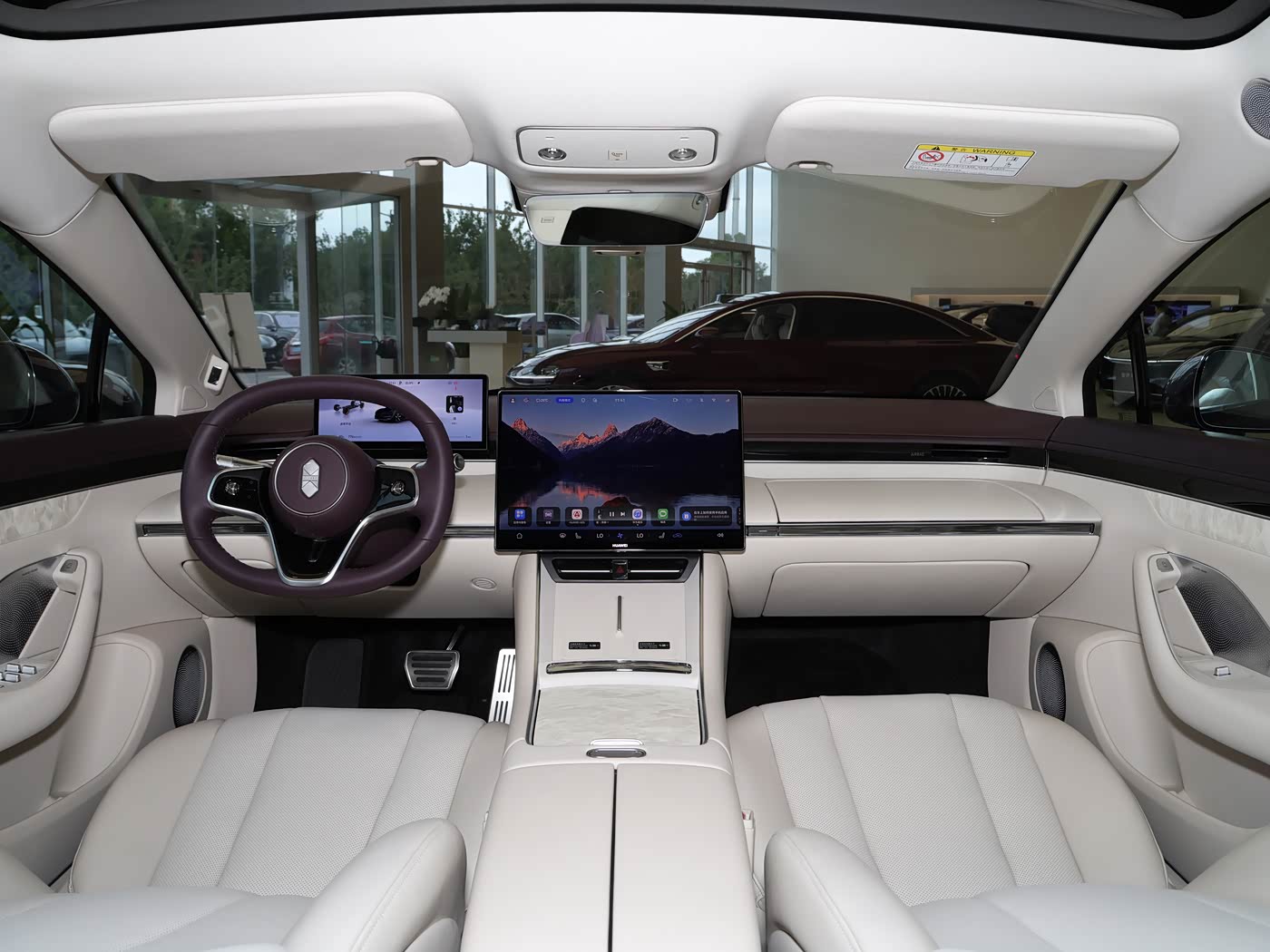 内饰方面,新款智界R7采用新增的罗兰紫/杏色双拼配色方案,副仪表台位置的中央盖板和车门饰板处采用官方称之为“凝光贝母”的工艺打造,在阳光下可以反射出独特光泽。同时,新车针对前排座椅座垫进行升级,配备有圆弧矩形方向盘、大尺寸中控屏、液晶仪表,副仪表台位置配备有双槽手机无线充电面板,新车在方向盘中央同样换装全新的车标。