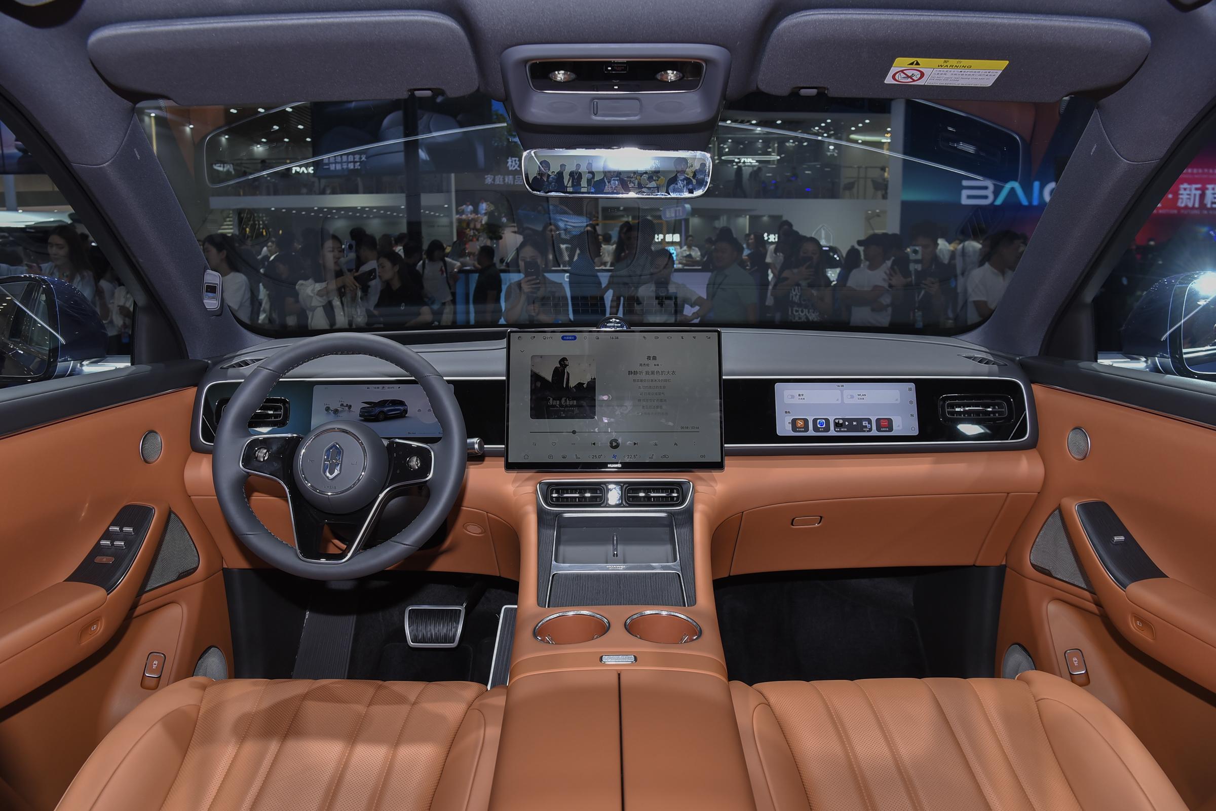 内饰部分,新车同样采用全新设计风格,车内整体采用极简化风格布局,使用浅棕色材质包覆。配置方面,新车中控屏尺寸从原来的15.6英寸升级至16.1英寸,分辨率提升至3K,副驾屏也更新至10.25英寸,和主驾仪表保持一致,看起来更协调。另外,新车还换装了问界M8同款三辐式方向盘及怀挡式换挡机构,中央岛台布局同步调整,整体科技感十足。智能辅助驾驶方面,新车采用HUAWEI ADS 4,全系标配激光雷达。座椅布局方面,新车提供2+3式5座和2+2+2式6座两种布局,其中6座版车型第二排采用两张独立座椅。