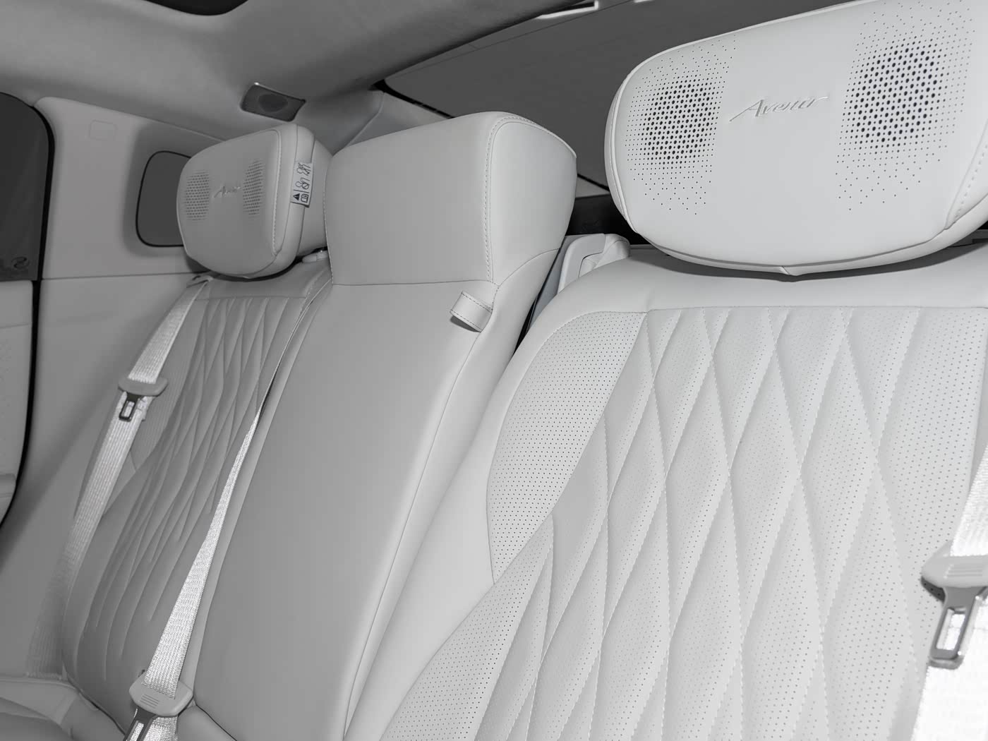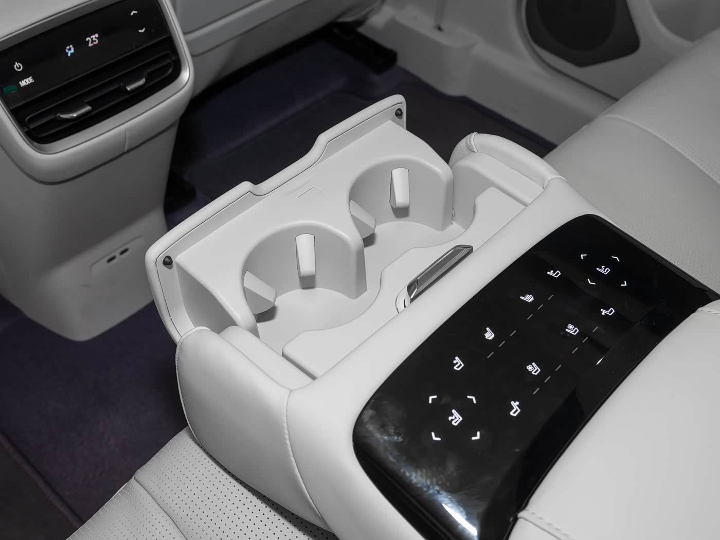 座椅方面,至境L7前后排四个座椅为全功能悬浮层座椅,采用Nappa真皮包裹,并且副驾为零重力座椅,提供四向电动腿托,腿托可伸长103毫米,具备语音、屏幕或实体按键三种方式进行控制。同时,该车第二排座椅功能包括电动腰托、电动靠背角度调节、加热、通风、按摩,可通过长度为610毫米的第二排中央扶手智能触控面板进行控制。