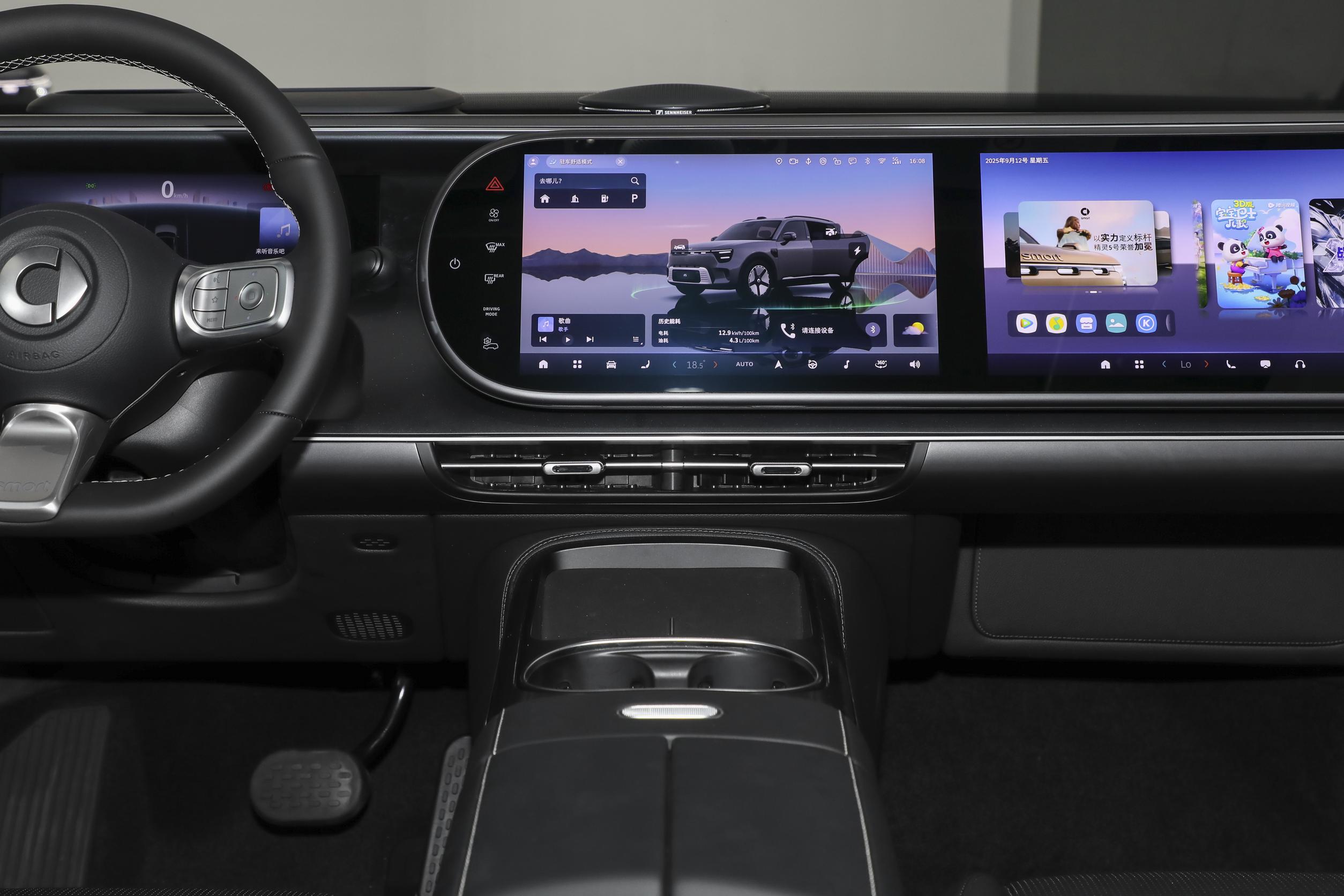 内饰部分,新车提供浅蜜棕和曜石黑共2种配色供用户选择,并对车内多处细节处运用镀铬进行装饰,整体看起来比较时尚。新车采用环抱式座舱设计,并应用双层中央岛台布局,配备10.3英寸全液晶仪表盘以及双13英寸的AMOLED超清2.5K联屏,且可联动25.6英寸的AR增强型抬头显示。车机芯片配备AMD V2000,是首款搭载豆包AI大模型的量产车。此外,新车还配备三辐式多功能方向盘和怀挡式换挡机构,整体科技感十足。座椅布局方面,新车车内采用5座布局,且全车座椅均支持加热。
