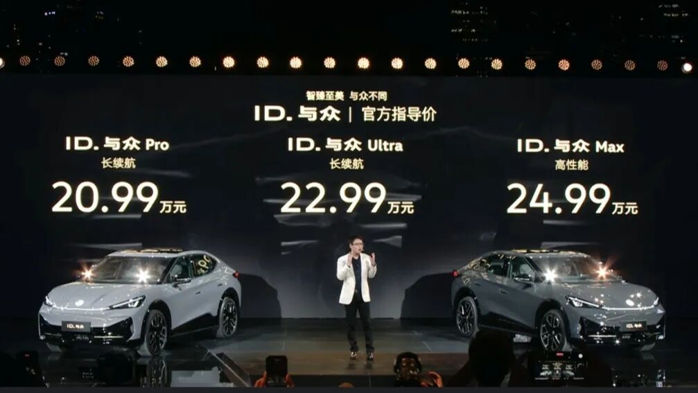 大众汽车(安徽)有限公司于2017年成立,由大众汽车集团与安徽江淮汽车集团股份有限公司合资组建,是大众汽车集团在中国首家专注于新能源汽车的合资企业。2020年12月,大众汽车集团增持江淮大众汽车有限公司股份至75%战略投资完成,并接管企业管理权,合资企业正式更名为大众汽车(安徽)有限公司。ID.与众则是大众安徽打造的全新产品系列,于2024年7月上市,彼时共推出3款车型,售价为20.99-24.99万元。与以往推出的ID.系列车型有所不同的是,ID.与众虽然也是基于MEB平台打造,但采用金色大众徽标,在设计上也有别于其它的ID.系列车型,车身遍布金色元素,整体设计更加凶悍更具攻击性。