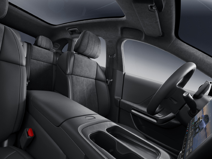 先来看看首度公布的内饰设计,新车车内提供速域紫、驰影灰、竞速灰共3款配色选择,其中,竞速灰将运用在高配车型上。另外,车内还运用大面积软包材质包裹,全系采用黑化哑光枪灰镀铬饰件布局,视觉效果上非常年轻时尚。配置方面,映入眼帘的是中控台配备了悬浮式全液晶仪表和中控屏,搭配双辐式多功能方向盘和怀挡式换挡机构,中控台两侧空调出风口带有金色饰条装饰,整体不失科技感。辅助驾驶方面,新车高配车型将搭载激光雷达。