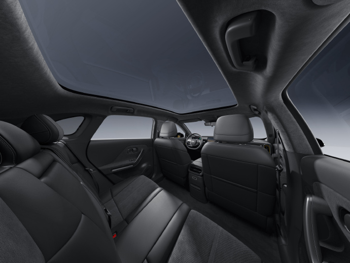 车身侧面,新车线条圆润饱满,采用溜背式造型设计,搭配无边框车门、隐藏式门把手、黑色外后视镜壳以及19英寸掠翼运动轮毂等设计,令车辆呈现出浓郁的运动气息的同时也兼顾时尚感。车身颜色方面,新车提供电掣黄、风驰灰、星夜蓝、摩根粉、星河银、金属黑共计6种颜色供消费者选择。其中,电掣黄、风驰灰为零跑Lafa5专属车色。