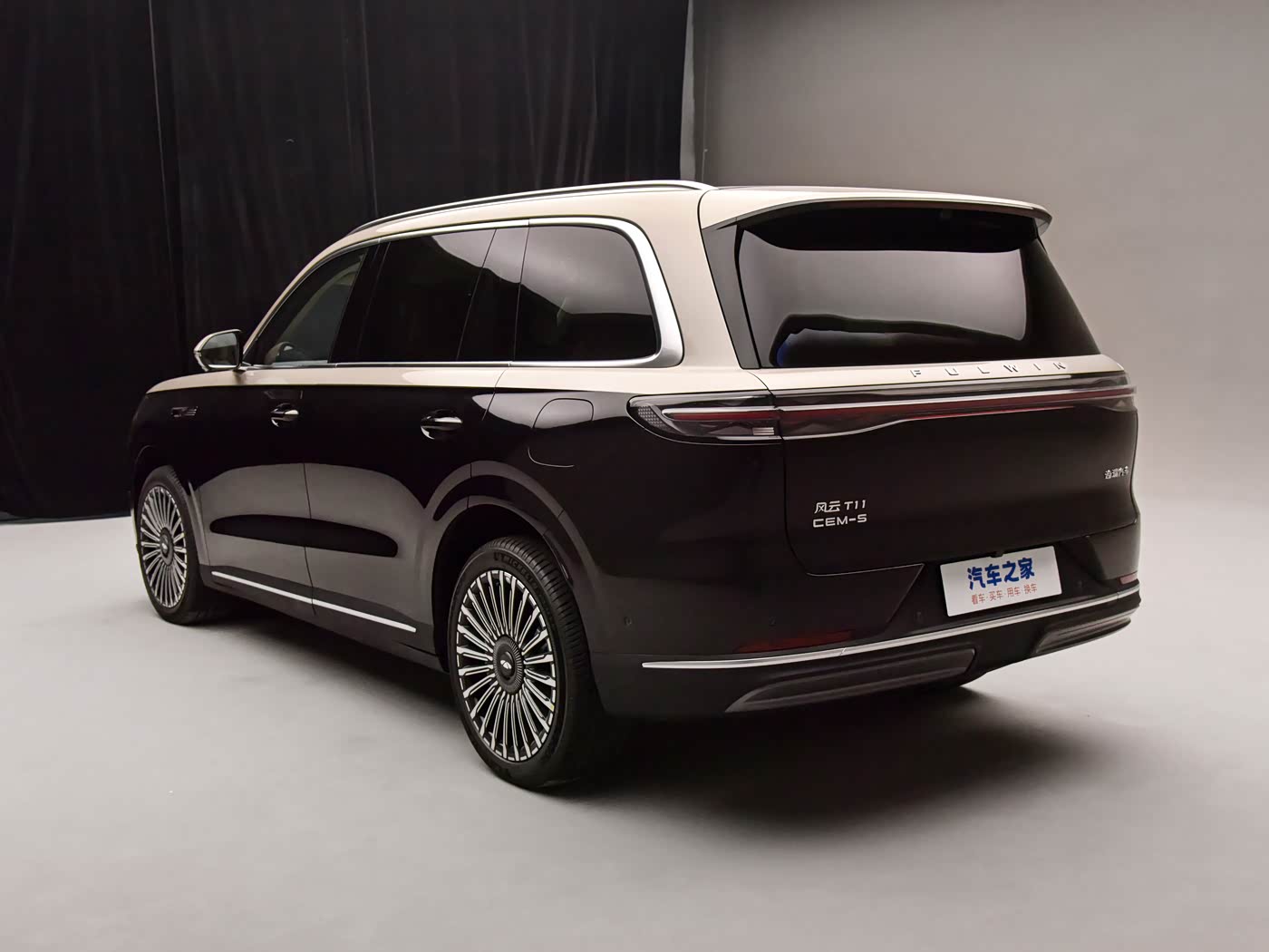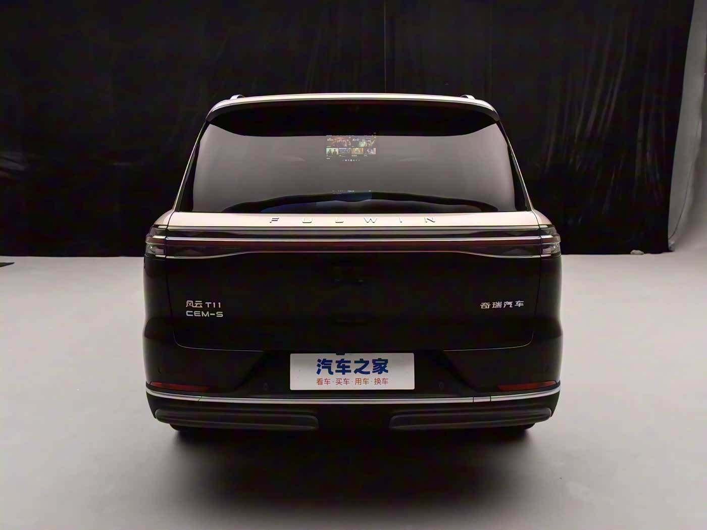 车身侧面,新车线条流畅平直,看起来非常修长,配备传统样式的车门把手以及密条辐21英寸轮圈,并对侧车窗以及车门下边缘位置加入镀铬装饰条,提升车辆精致感。尺寸方面,新车长宽高分别为5150/1995/1800mm,轴距为3120mm,定位6座大型SUV。车身颜色方面,新车提供极光绿、墨石黑、云黛蓝、沙澜金、胭脂红、月影灰共6款单色涂装以及黑曜鎏金、烟雨冰蓝、林溪铂银共3款双色涂装,以满足消费者不同 的个性需求。车尾部分,新车整体造型相对简洁,尾灯采用贯穿式灯组设计,夜间点亮后辨识度非常高,尾灯组上方标有“FULWIN”英文标识,尾门左下角则带有“风云T11”表明车辆身份信息。后包围部分带有银色的镀铬装饰条,搭配车顶扰流板以及内嵌高位刹车灯组和隐藏式的后窗雨刷器,营造出不错的运动气息。排气方面,新车提供隐藏式排气布局。