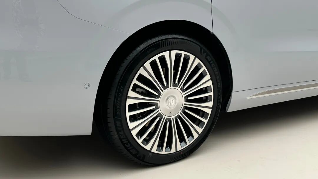 车身侧面,新车车顶线条趋于平直线条设计,并运用纯平侧窗设计,车窗与车身完全齐平,营造出豪华质感。新车还配备隐藏式门把手和半封闭式的大饼轮圈,并提供车顶行李架,搭配马牌EC7S系列轮胎,规格为265/45 R21,看起来非常稳重大气。尺寸方面作为零跑汽车旗下全新旗舰车型,新车车长将超5.2米,车宽近2米,轴距超3.1米。车身颜色方便,新车提供松谷绿、液态银、金属黑、天幕灰、光电白共计5款颜色供消费者选择。