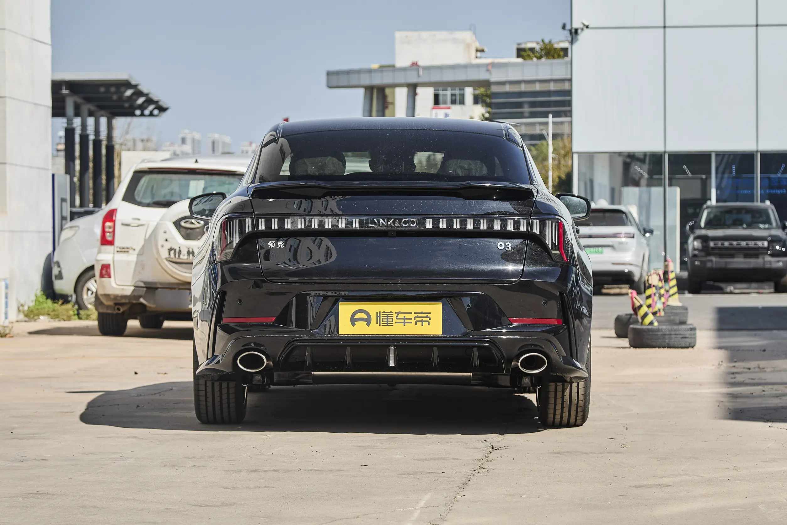 车身侧面,新款领克03与现款车型保持一致,长宽高分别为4700/1843/1460mm,轴距为2730mm,车身长度较老款03有所增加,另外新增18英寸动态光刃轮圈,增加运动感。车辆尾部,新车采用全新锋刃尾部造型设计,后包围整体仍然强化运动属性,并通过全新的大尺寸后扰流板增加视觉重心,车辆尾部保留双边排气。新款领克03+依旧搭载固定式大尺寸碳纤维尾翼,尾翼端板上配有Downforce+赛道的组合样式徽标,后包围底部增加碳纤维套件,两端同样配有小尺寸的风刃造型。
