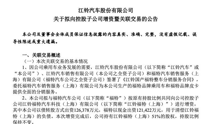当然,此次的人事调整或与后续江铃福特的全新品牌战略布局有关。据了解,福特汽车在中国市场拥有两大合资企业,分别是长安福特和江铃福特。9月23日,江铃汽车发布公布称:因乘用车业务发展的需要,江铃汽车、江铃汽车销售有限公司和福特汽车销售服务(上海)有限公司签署了《江铃国产福特整车分销服务合同》,委托福特汽车销售服务(上海)有限公司为本公司生产的福特品牌乘用车和皮卡提供全面分销服务。与此同时,还宣布与福特按持股比例共同向江铃福特汽车科技(上海)有限公司增资,其中江铃汽车以债转股方式出资约12.64亿元,福特以现金出资约12.14亿元,用于清偿江铃福特(上海)的负债。彼时,对于该整合,江铃汽车内部人士表示,通过此次调整,双方将进一步实现优势互补,促进江铃福特(上海)商乘并举的渠道网络与福特成熟的乘用车网络实现深度整合,最大化覆盖不同细分市场和多场景的客户需求。