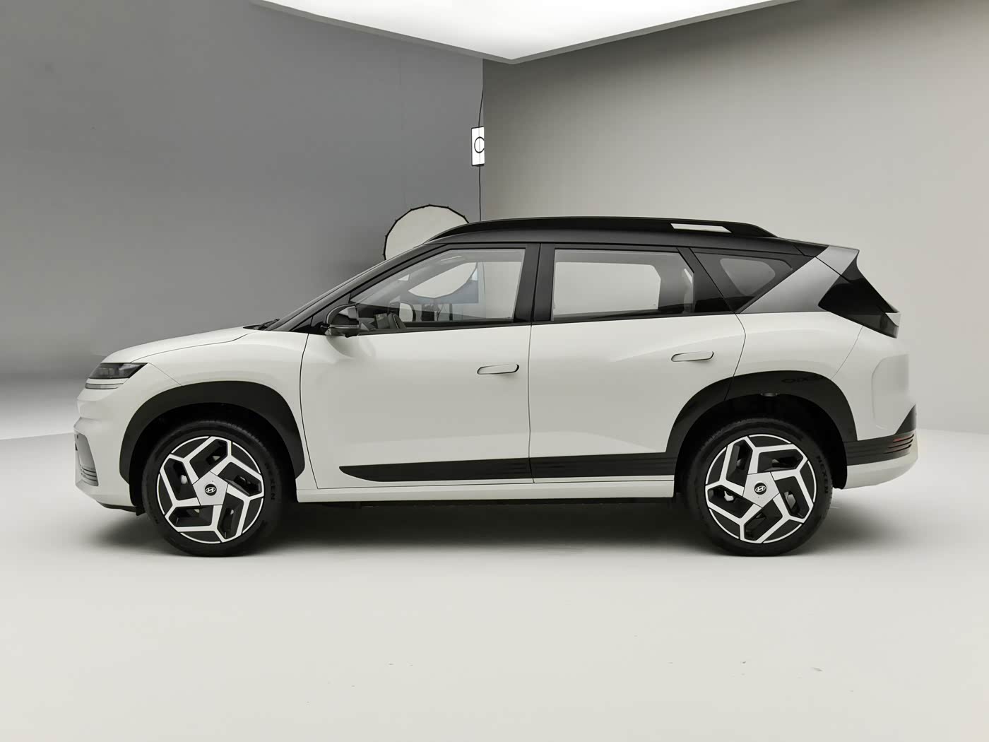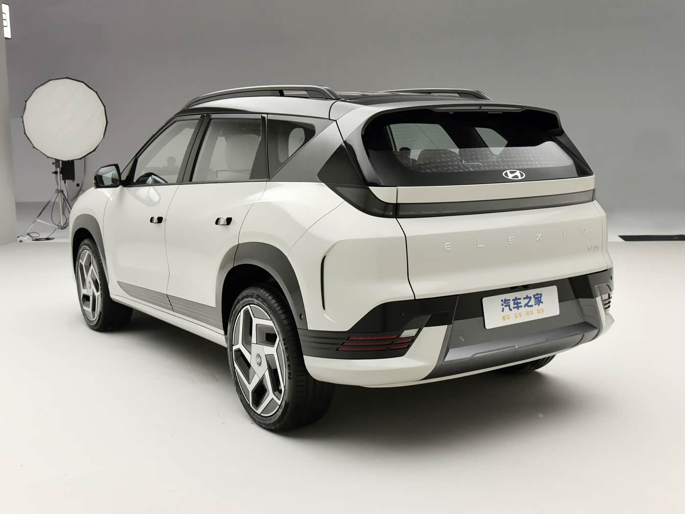 车身侧面,新车通过熏黑A柱设计营造出悬浮车顶的感觉,车顶线条从B柱开始向下平滑过渡,搭配具有上扬式设计的车窗下沿,同时采用隐藏式门把手以及隐藏式D柱设计,营造出较为运动的车身姿态。值得一提的是,新车侧面尾窗后方装饰条采用撞色设计,并与车顶末端尾翼相连,具有环绕式效果。尺寸方面,北京现代EO 羿欧长宽高分别为4615/1875/1676(1700)mm,轴距2750mm,定位紧凑型纯电SUV。车尾部分,新车采用与车头互相呼应的设计,贯穿式灯带搭配底部颇为运动的包围,营造出不错的运动感。现代品牌LOGO镶嵌在尾窗位置,尾灯下方则还拥有英文标识。后包围采用了与车身不同色的多层结构,整体搭配让车辆看上去更有层次。
