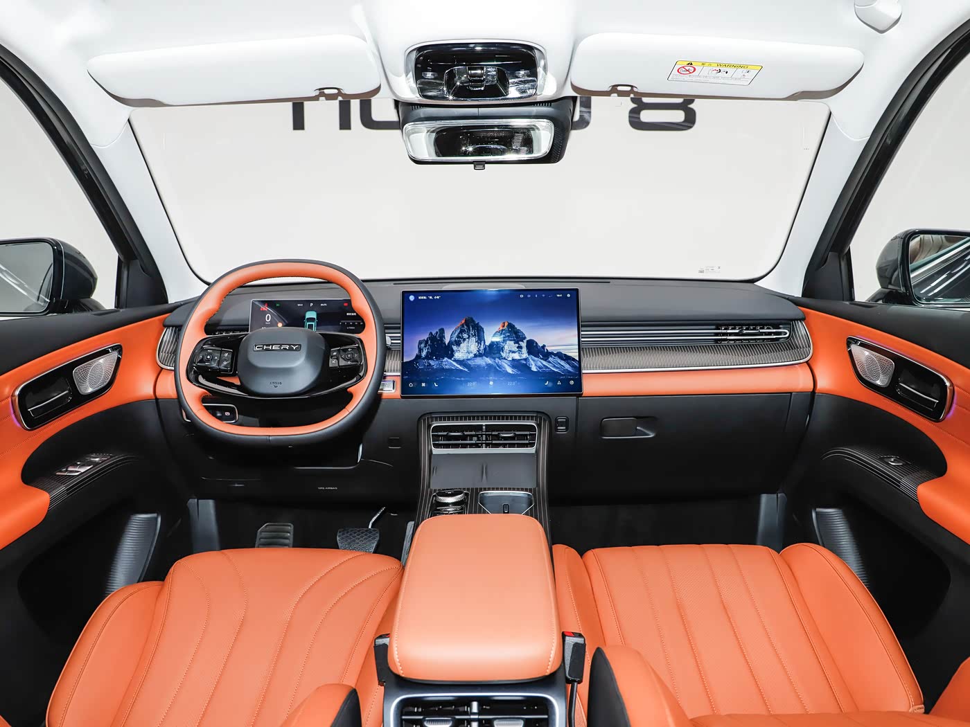 内饰方面,全新瑞虎8提供黑棕双色车内配色,采用全新怀挡式换挡杆和全新样式的双辐式造型多功能方向盘,并且根据前脸造型差异,中控屏样式也有所不同。其中,虎款前脸车型提供悬浮式横向中控屏,设计有双手机放置平台和单无线充电板。豹款前脸车型则使用一体式竖向中控屏,保留部分空调控制实体按键和单手机无线充电板。