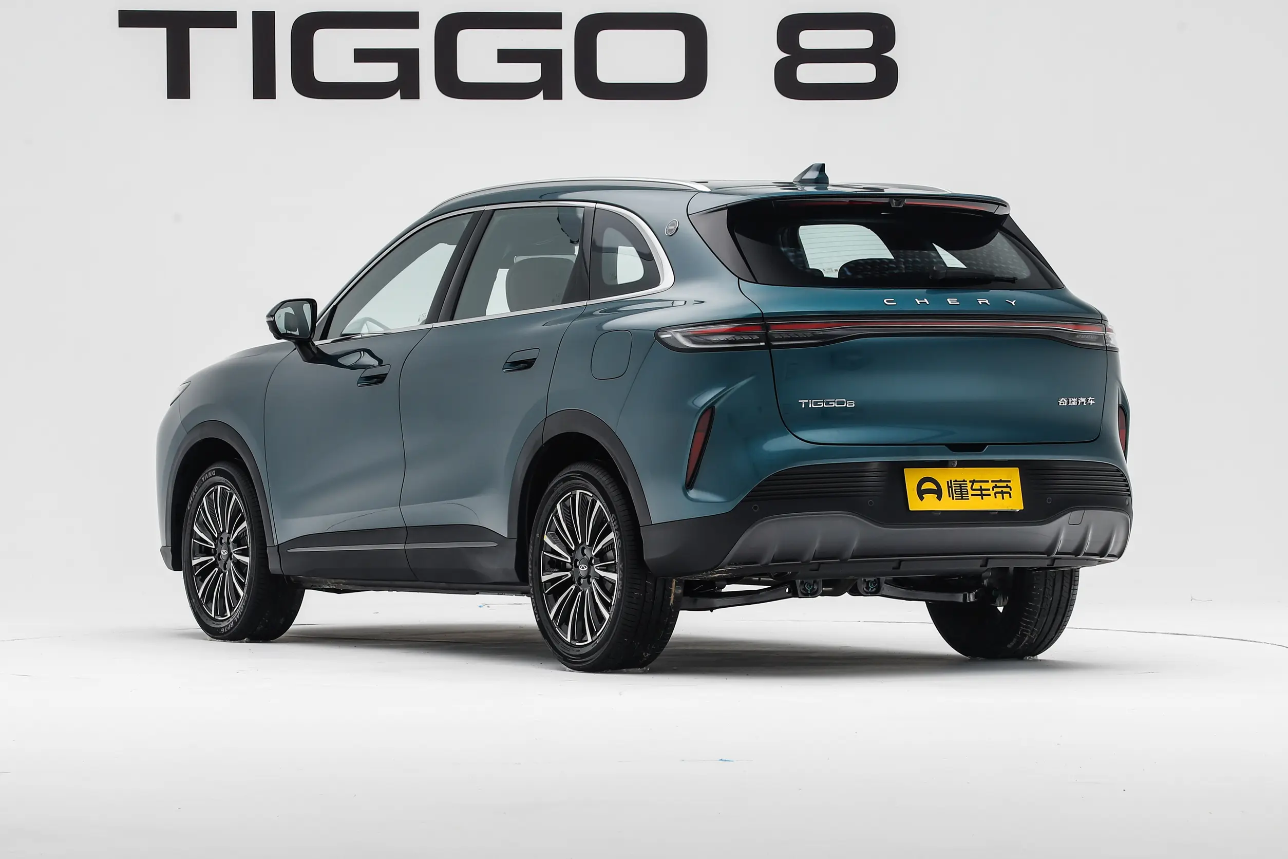 车身侧面,新车采用半隐藏式门把手设计,车顶线条从B柱后逐渐下沉,配合前倾式C柱设计,营造俯冲的动感姿态。尺寸方面,新车长宽高分别为4749/1880/1710mm,轴距为2825mm。车尾部分,新车换装全新样式的贯穿式尾灯,“CHERY”标识位于尾灯上方,有着不错的时尚感。两款车型下包围有所区别,分别采用隐藏式排气设计和双边共两出式排气装饰,并将后保险杠下部设计为仿导流槽造型。