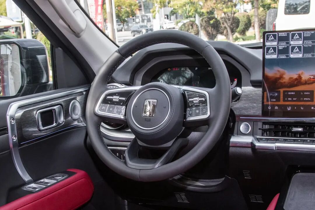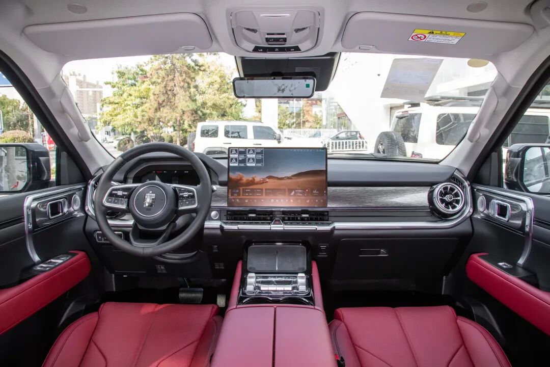 外观方面,新车基本延续了机甲风格设计,前格栅尺寸更大,前格栅配备两条横向布局的镀铬饰条,头灯组为多边形样式。前包围进行重新设计,由在售车型的上扬造型改为了平直线条,配备高功率LED雾灯,最远照射距离约31.6米。同时,车辆前包围中间以及雾灯周围配备有黑色装饰件,还配备远红外夜视系统。