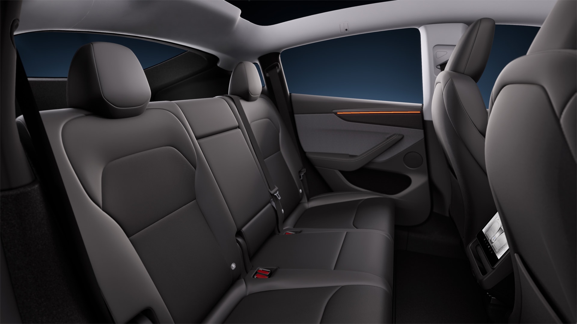 内饰方面,Model Y长续航后轮驱动版采用屏幕换挡,灯光、转向、雨刷、语音助手等功能集成于方向盘左右两侧,且为物理按键控制。中央仍然是15英寸的方形显示屏,车机芯片AMD Ryzen,屏幕下方仍然是两个无线充电面板,后部是一个隐藏式的储物空间,再加上中央扶手,会形成两个巨大的储物空间。