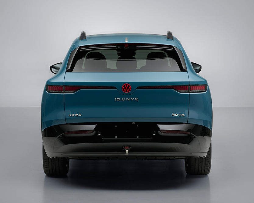 结合实车图来看,与众08基本延续ID. EVO概念车的设计,前脸采用封闭式造型,狭长且上扬的大灯组,配合中央大众品牌LOGO,下包围设计有黑化装饰件,整体延续了大众安徽大胆、前卫、犀利的设计风格。车身侧面,其对A柱进行黑化处理,呈现出悬浮车顶的视觉效果,并配备有车顶行李架,采用密辐式轮圈造型,配合隐藏式车门把手,整体十分时尚。车尾部分,其采用狭长平直的尾灯组,相比车头要相对内敛,配备可发光的红色尾标,下侧为“ID.UNYX”金色标识,尾门右侧“与众08”标识表明身份信息。尺寸方面,与众08的长宽高分别为5000/1954/1672(1688)mm,轴距为3030mm,定位全尺寸SUV,采用五座布局。