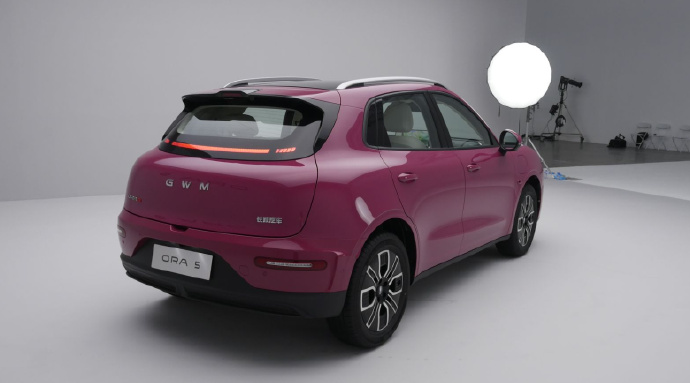 车身侧面,新车采用官方称为“行云流水”的车身曲线,并对B柱进行黑色涂装,搭配车顶行李架、常规造型门把手以及18英寸双色半封闭式轮辋,呈现出较强的运动气息。另外,新车充电口位于车辆前翼子板位置。车身颜色方面,新车提供极光绿、白崖白、塞纳灰、沙洲米、赛里木湖蓝、林芝红共6种颜色供消费者选择,满足不同消费群体的审美需求。尺寸方面,新车长宽高分别为4471/1833(1844)/1641mm,轴距为2720mm,定位纯电紧凑型SUV。作为参考,2025款欧拉好猫长宽高分别为4242(4254)/1825(1848)/1632mm,轴距为2650mm,相比之下,新车尺寸更大。车尾部分,新车整体造型相对简洁,尾灯采用与好猫相似的“地平线”尾灯组设计,配备车顶扰流板并内嵌高位刹车灯组,尾门中央处悬挂“GWM”车标,左侧为“欧拉猫”,右侧为“长城汽车”,视觉辨识度非常高。