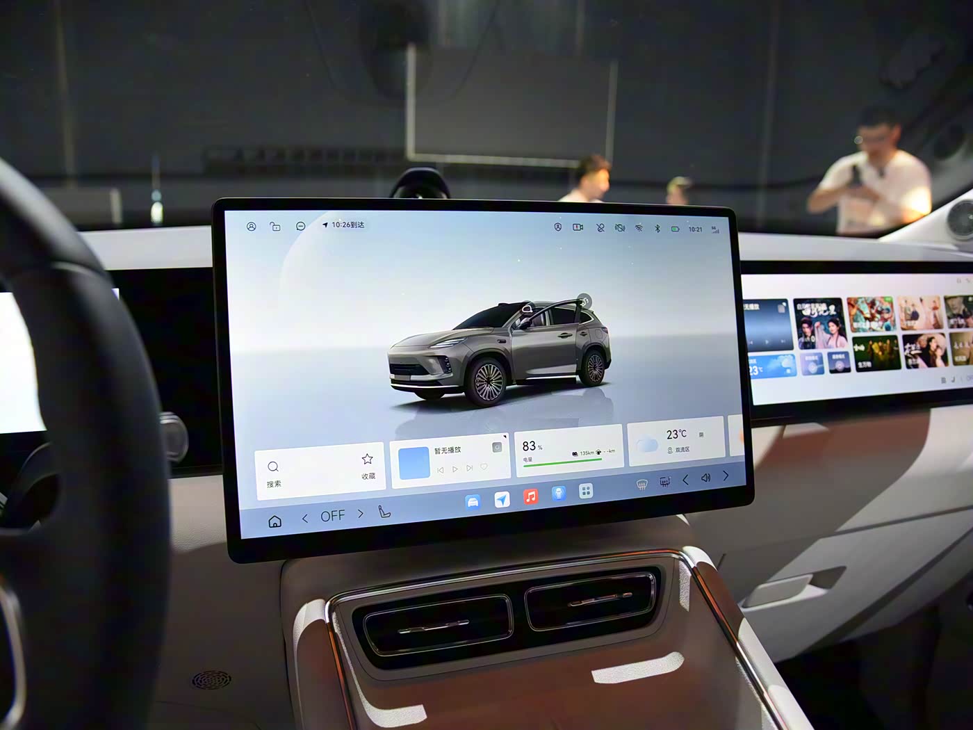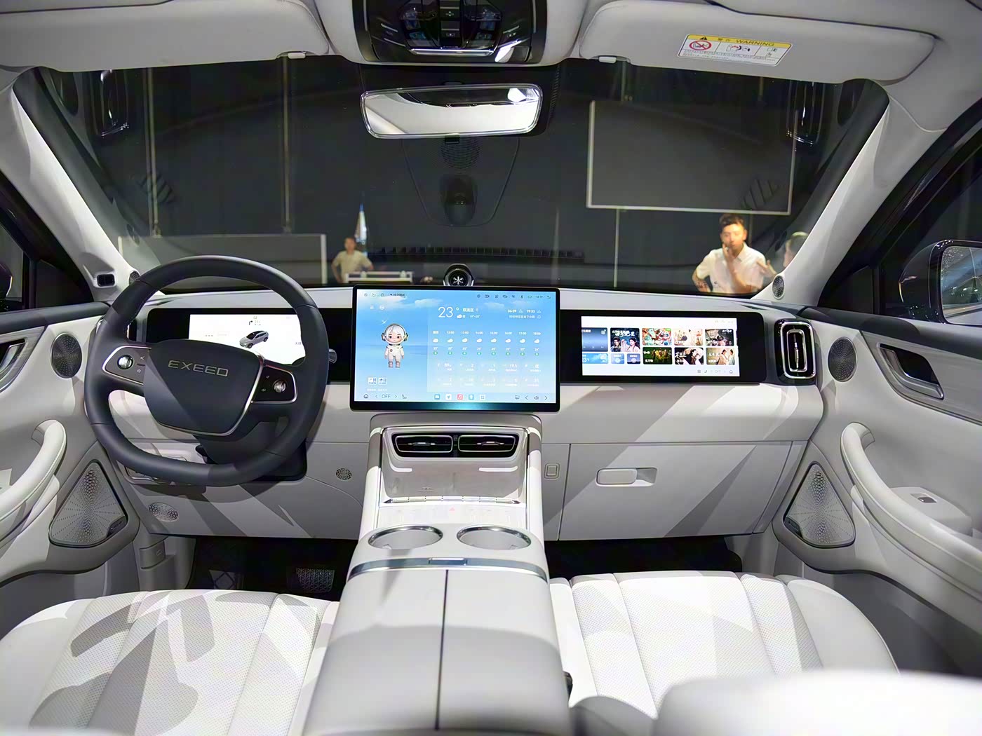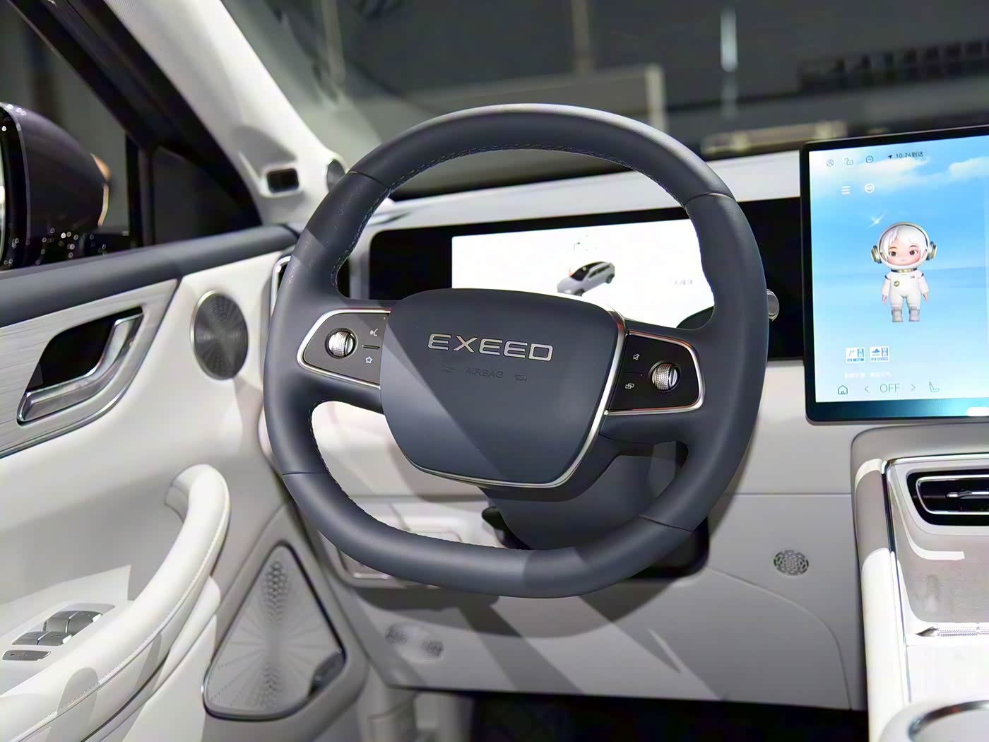 内饰方面,新车配备全液晶仪表盘以及副驾娱乐屏,中控制键为悬浮式设计的多媒体触控屏,配备双辐式多功能方向盘,两侧具有触控按键和滚轮,并应用了怀挡式换挡机构。副仪表台布局有手机无线充电面板、杯托、对开中央扶手箱等,底部还具有额外储物空间,木纹饰板位置还设计有触控按键。车辆内侧门板提供木纹饰板、氛围灯,扬声器罩为金属材质,还具有A柱扬声器。