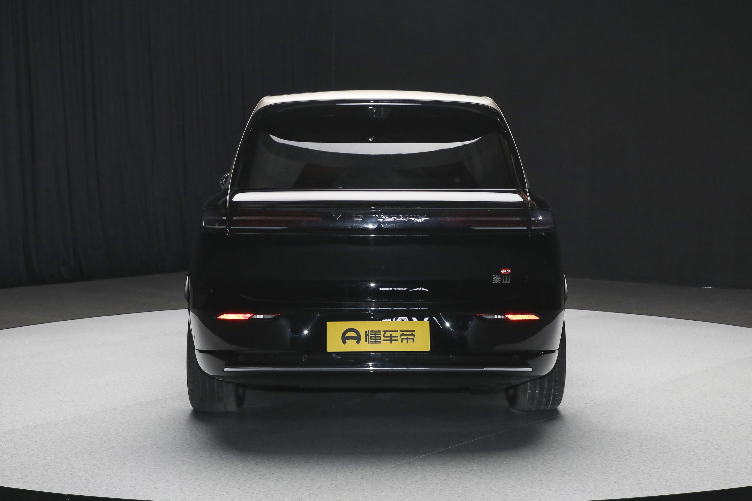 车身侧面,新车线条平直,搭配庞大的车身尺寸,令整车看起来非常魁梧大气。新车采用半隐藏式车门外拉手,具备电动侧踏板和迎宾光毯功能,并配备21英寸和22英寸两种“大饼式”轮毂,对应轮胎规格分别为255/50 R21和275/45 R22。车身颜色方面,新车提供赤霞紫、远山蓝、香槟金、玄英黑、杜若白、宸星灰车身配色供消费者选择。尺寸方面,新车长宽高分别为5230/2025/1817mm,轴距为3120mm,定位六座大型SUV。车尾部分,新车采用贯穿式尾灯组设计,并将品牌英文标识嵌入尾灯中央,搭配大尺寸扰流板与倒梯形牌照框设计,令尾部造型更具层次感。