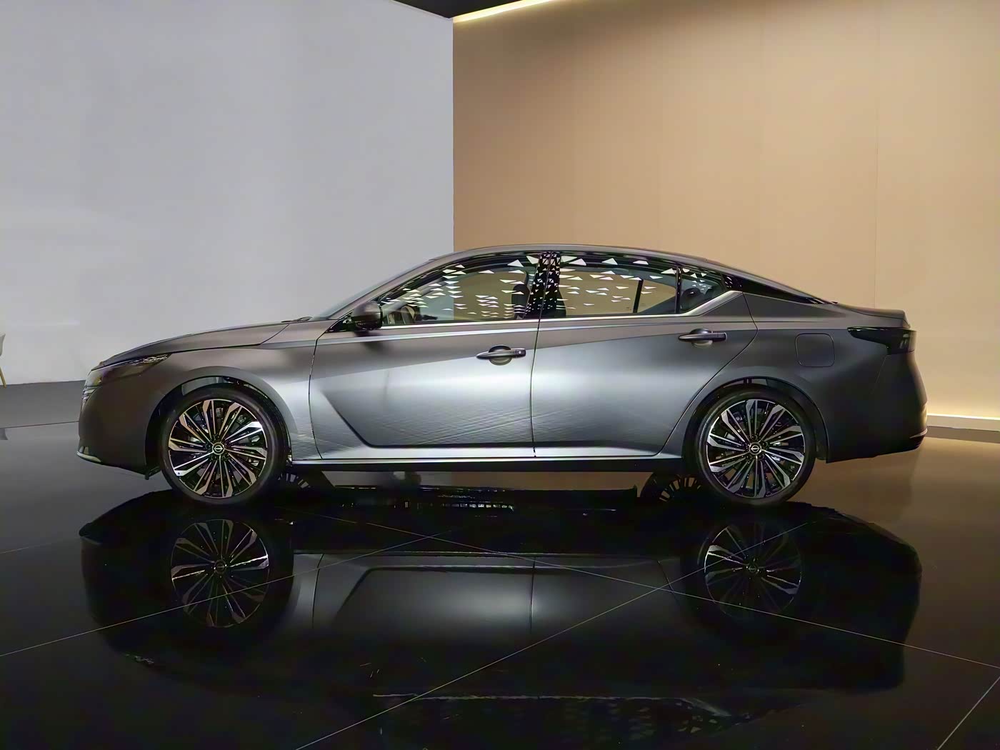 尺寸方面,新车长宽高分别为4920/1850/1447mm,轴距为2825mm。相比于现款天籁,新车车身长度增加了14mm,其它尺寸则保持不变。车身颜色方面,新车提供哑光灰和幻影紫两款车色选择。车尾部分,新车尾灯采用全新贯穿式尾组设计并进行熏黑处理,灯组中央镶嵌了日产可发光的英文字母“NISSAN”LOGO,两侧则镶嵌11枚宝石灯体,配合小鸭尾式扰流板设计,令车辆整体视觉效果非常精致,辨识度也极高。